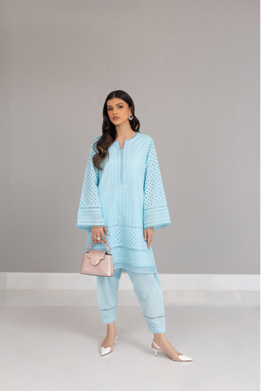 detailing. It is paired with a cotton shalwar enhanced with lace detailing.