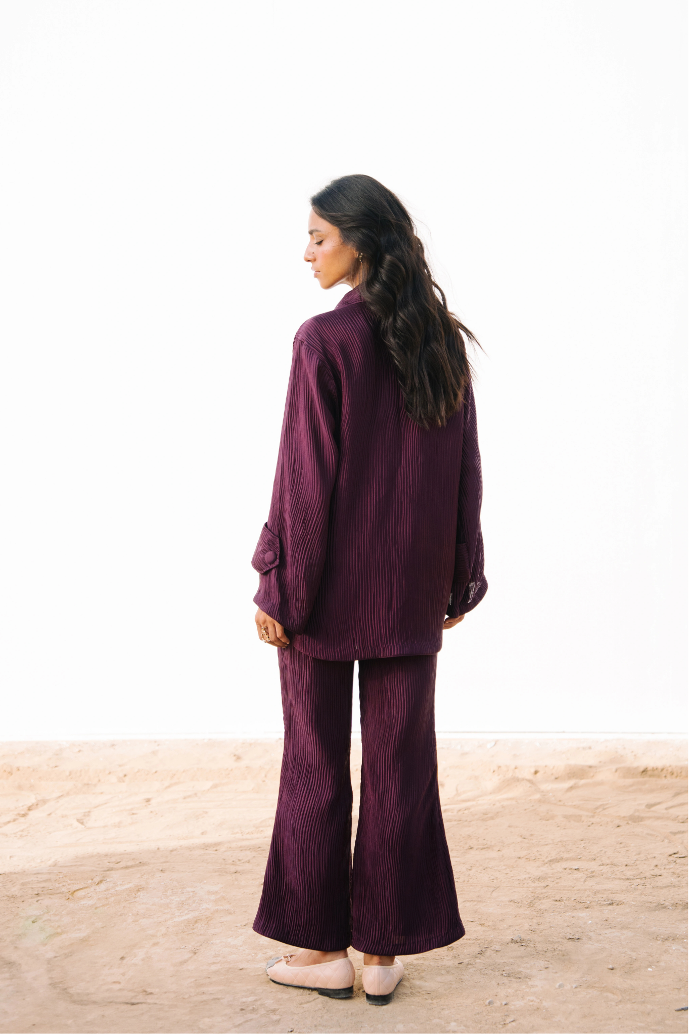 The Mulberry Pleats set brings comfort and style together, ideal for day-to-night wear. Paired with a short flared trouser.